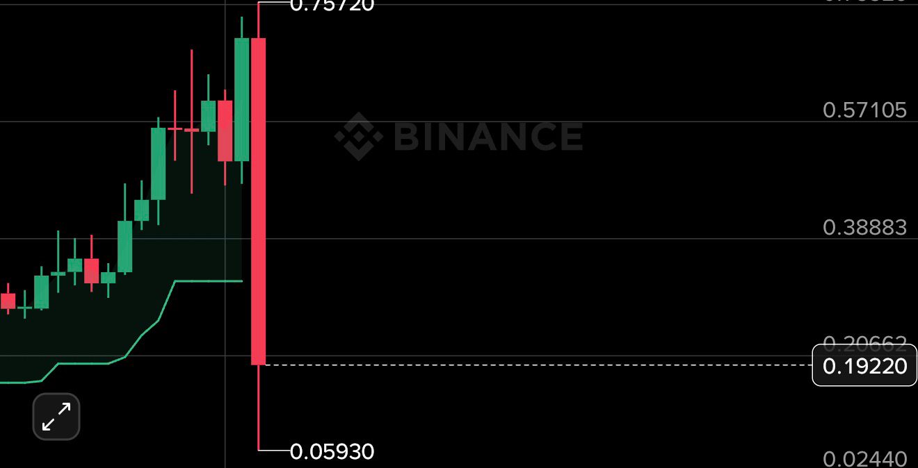 after rising gradually over the past weeks, the token reached a high around $0.70 and then suddenly dropped to nearly $0.10 in a very short time, causing massive losses for late buyers who entered at the top.