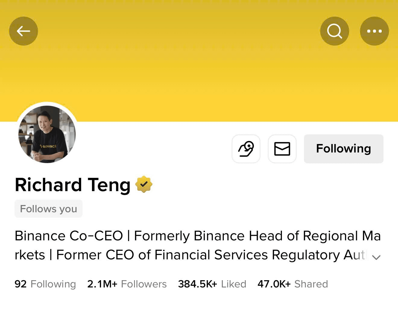 👁️ Followed directly by CEO Richard Teng and Binance Square Official - I saw the notification, didn't believe it, and had to check twice