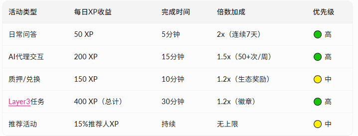 ✅ AI agent interaction (200 XP): Chat with 3 agents, recommended to complete 10 interactions to receive rewards
