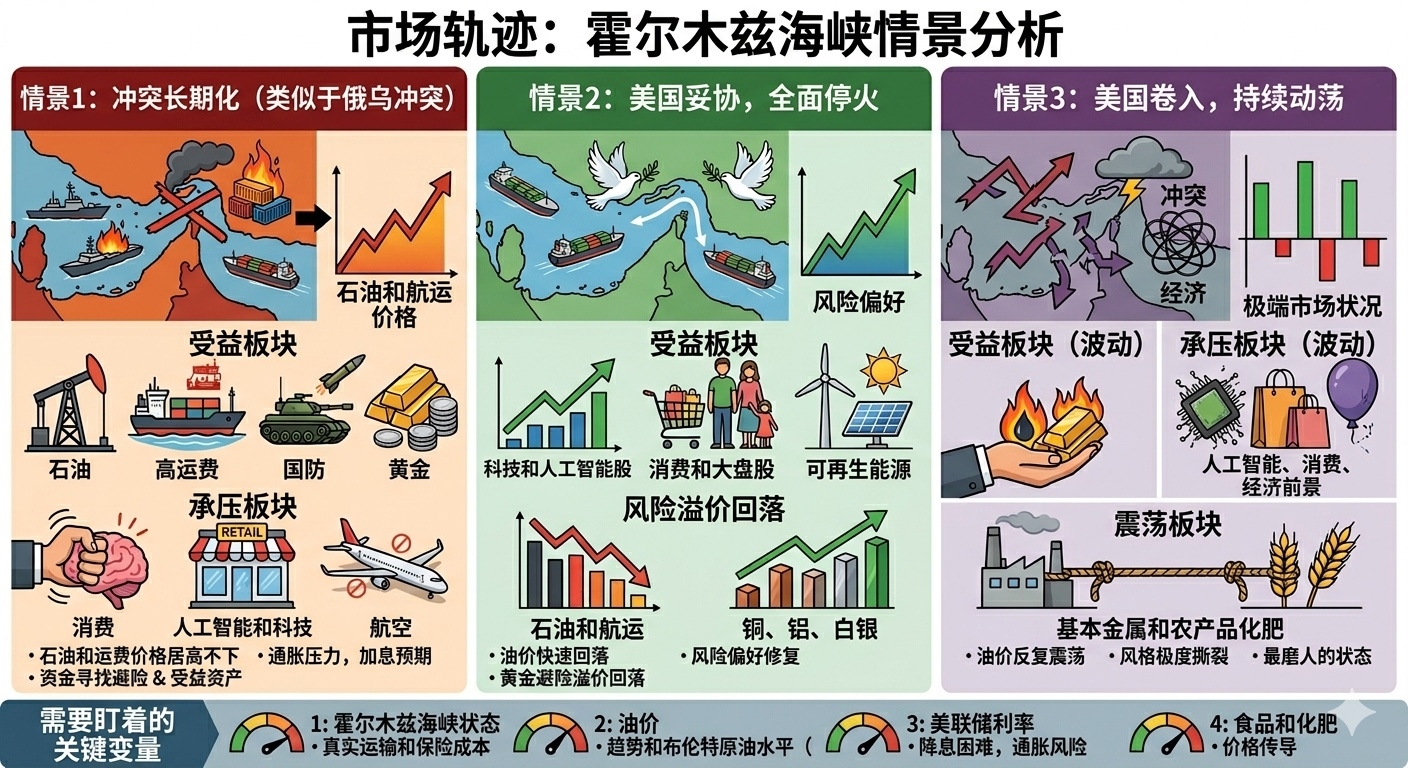 Logic: Hormuz returns to normal, oil prices fall rapidly, market risk appetite significantly recovers, liquidity expectations improve.