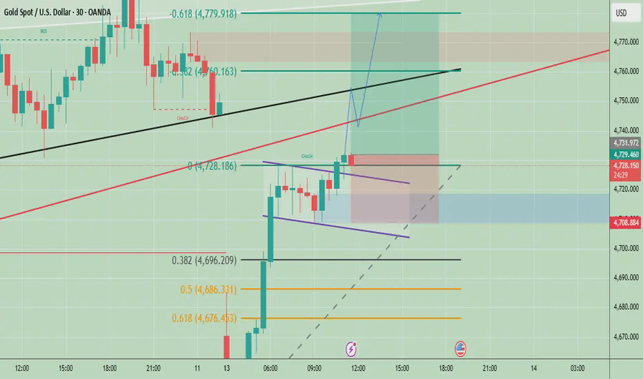 Gold $XAU is currently showing a strong bullish recovery after rejecting the 4644 low and holding above key support levels. Price has formed a short-term ascending structure and is now consolidating inside a minor bullish flag. The recent push above 4728 indicates bullish momentum building while the structure suggests continuation towards higher resistance if price sustains above the trendline and breakout zone. Overall bias remains bullish as long as price holds above 4700-4708 support.