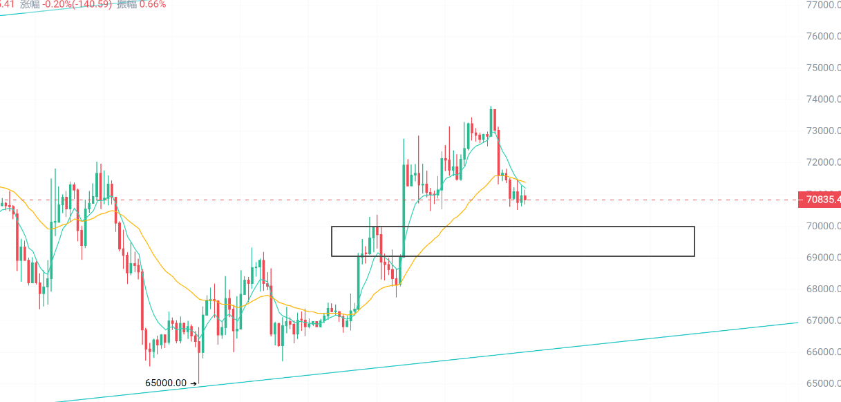 $BTC: Bitcoin's short-term support is concentrated around 69,000 to 70,000, which has been tested multiple times during the day. If it effectively breaks down, a revisit to around 68,000 cannot be ruled out. However, from an overall structural view, this area still possesses holding capacity and can serve as a reference area for phased layout. The general direction remains bullish, and the target for the upper range this month still focuses on 76,000 to 80,000.