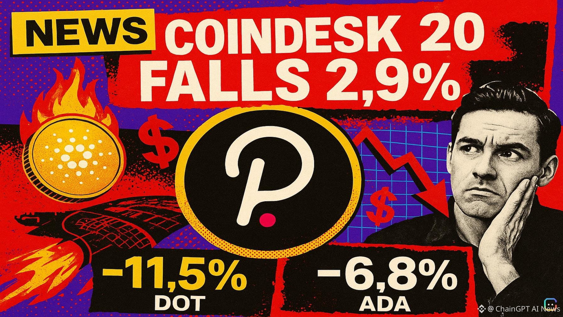 Headline: CoinDesk 20 slips 2.9% as every constituent trades in the red CoinDesk Indices’ benchmark fell sharply overnight, with the CoinDesk 20 index sliding 2.9% (down 59.17 points) since 4 p.m. ET on Friday to 1,974.81. Notably, all 20 assets in the index are trading lower, signaling broad weakness across major crypto names. Top performers (least down): NEAR essentially flat (+0.0%) and AAVE marginally lower (-0.1%). Biggest decliners: Polkadot (DOT) tumbled 11.5%, while Cardano (ADA) fell 6.8%. The CoinDesk 20 is a broad-based index that is traded across multiple platforms in several regions worldwide, making it a widely watched snapshot of larger-cap crypto market trends. Read more AI-generated news on: undefined/news