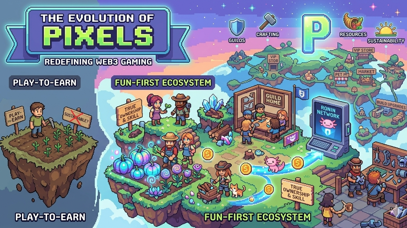 Web3 gaming is evolving rapidly, and right at the center of this revolution is @Pixels . It’s fascinating to see how a simple farming and exploration game has transitioned into a massive, player-driven economy on the Ronin network. What sets this project apart isn't just the charming pixelated graphics, but the profound shift toward true ownership, skill development, and community building.