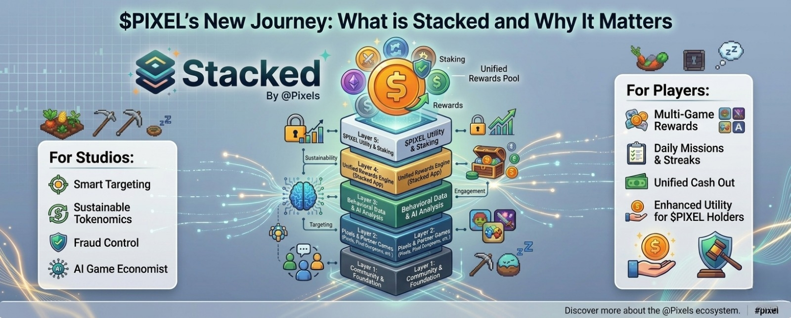 Layer 5: PIXEL Utiliy & Staking, the final layer for utility and governance.