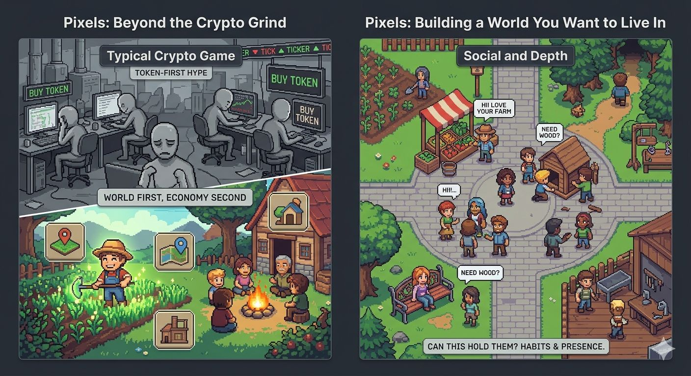 Pixels stands out to me because it never really forced itself into the usual crypto game script I’ve seen that script too many times already same recycled pitch same noise same dressed-up economy and then the same slow bleed once attention moves on