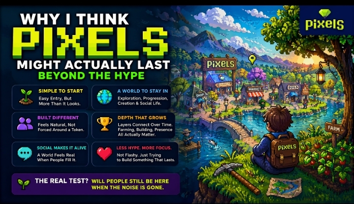 So when I look at Pixels I m not looking for something perfect I m just paying attention to how it feels. And right now it doesn t give me that familiar sense that I m staring at another hollow setup built to survive one good cycle and quietly fade after