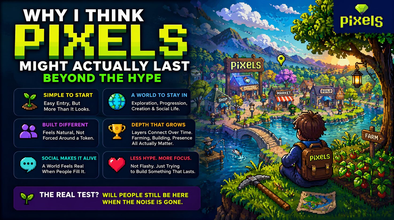 Pixels at least for now, feels like it s trying to solve that It doesn t rely entirely on short term attention It feels like it s building something people might actually stay in not just visit