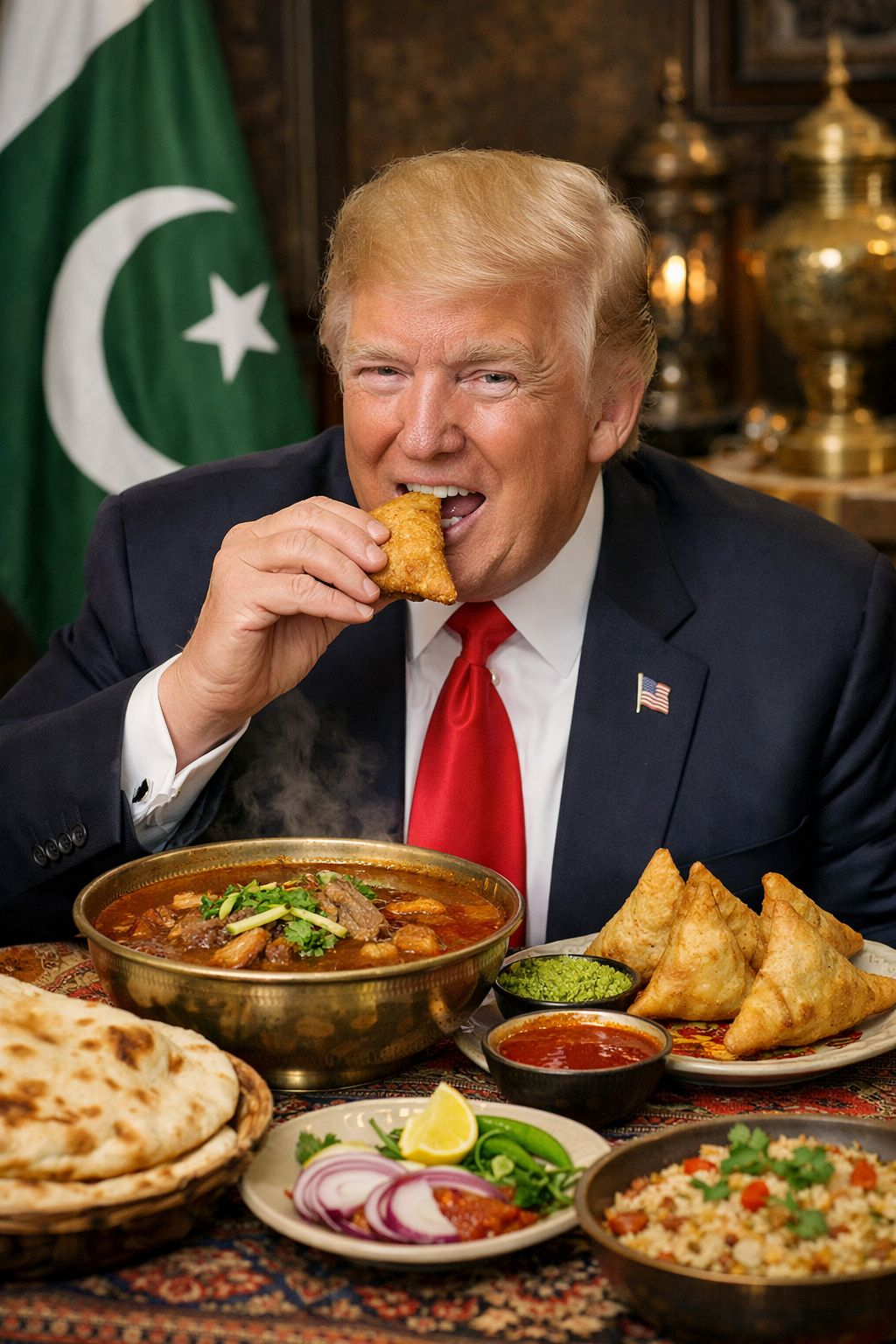 When Donald Trump visited Pakistan, he tried Nihari and Paya and said, “This is next level!” 😄🇵🇰