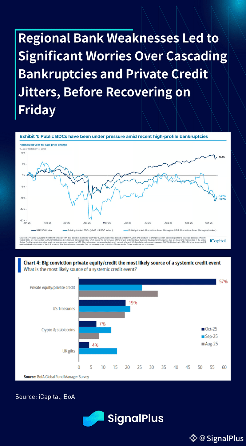 Furthermore, yet another quarter of stronger than expected results for bank earnings helped calm some of the private credit worries from the First Brands bankruptcy and the subprime auto lender write off (Tricolor, $170M charge-off), even despite Jamie Dimon ominiously stating that “And I probably shouldn’t say this, but when you see one cockroach, there are probably more. And so we should — everyone should be forewarned on this one.”, with regards to more credit defaults down the line.