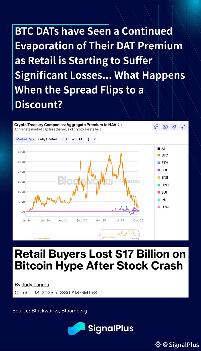 Crypto certainly has seen better weeks, with prices suffering yet another drawdown last week after the altcoin flash crash from the week before. Bloomberg reports that retail investors have lost $17bln across BTC DATs after the recent crash, with BTC ETFs seeing the 2nd worst weekly outflows YTD (-1.2bln) while DAT premium continued to crater to record lows.