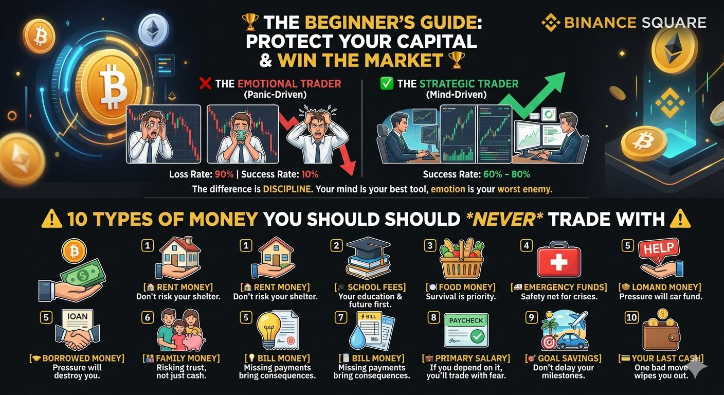 If you use money meant for basic needs, you have already lost the psychological battle. Never trade with: