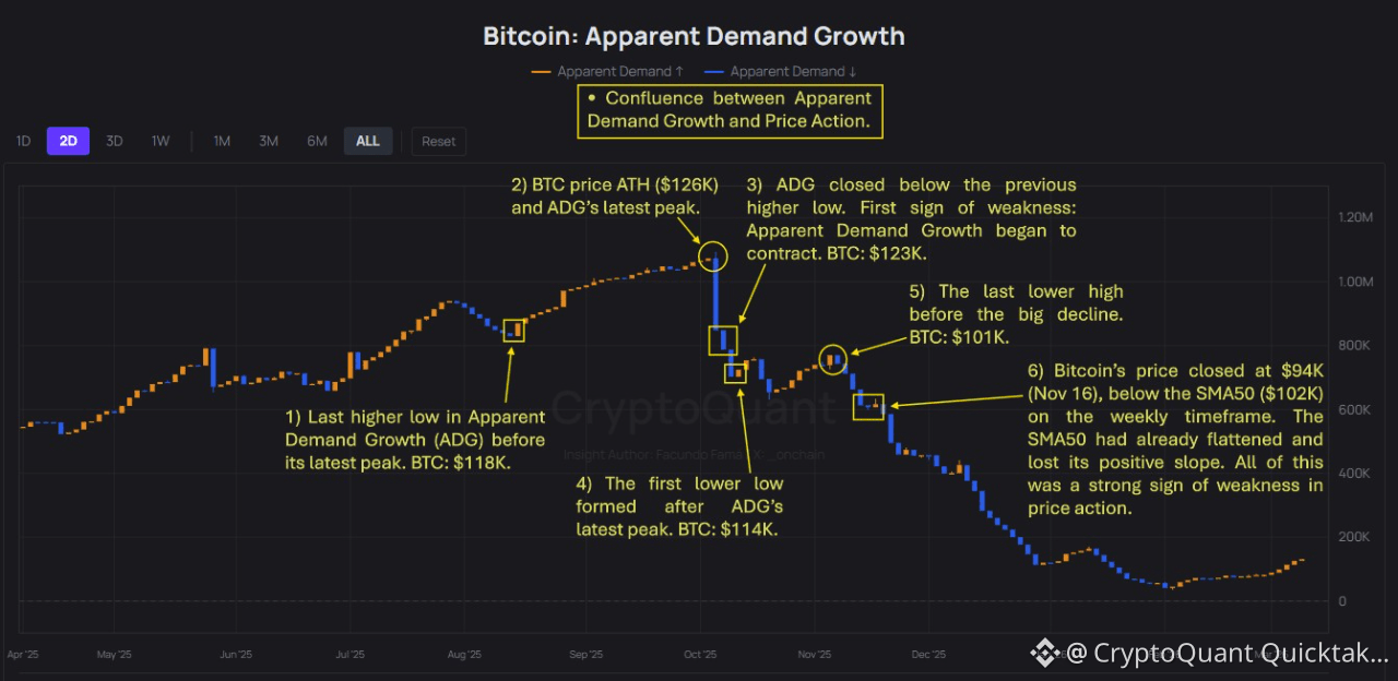 • As shown, Bitcoin demand began to contract sharply before it directly affected price.