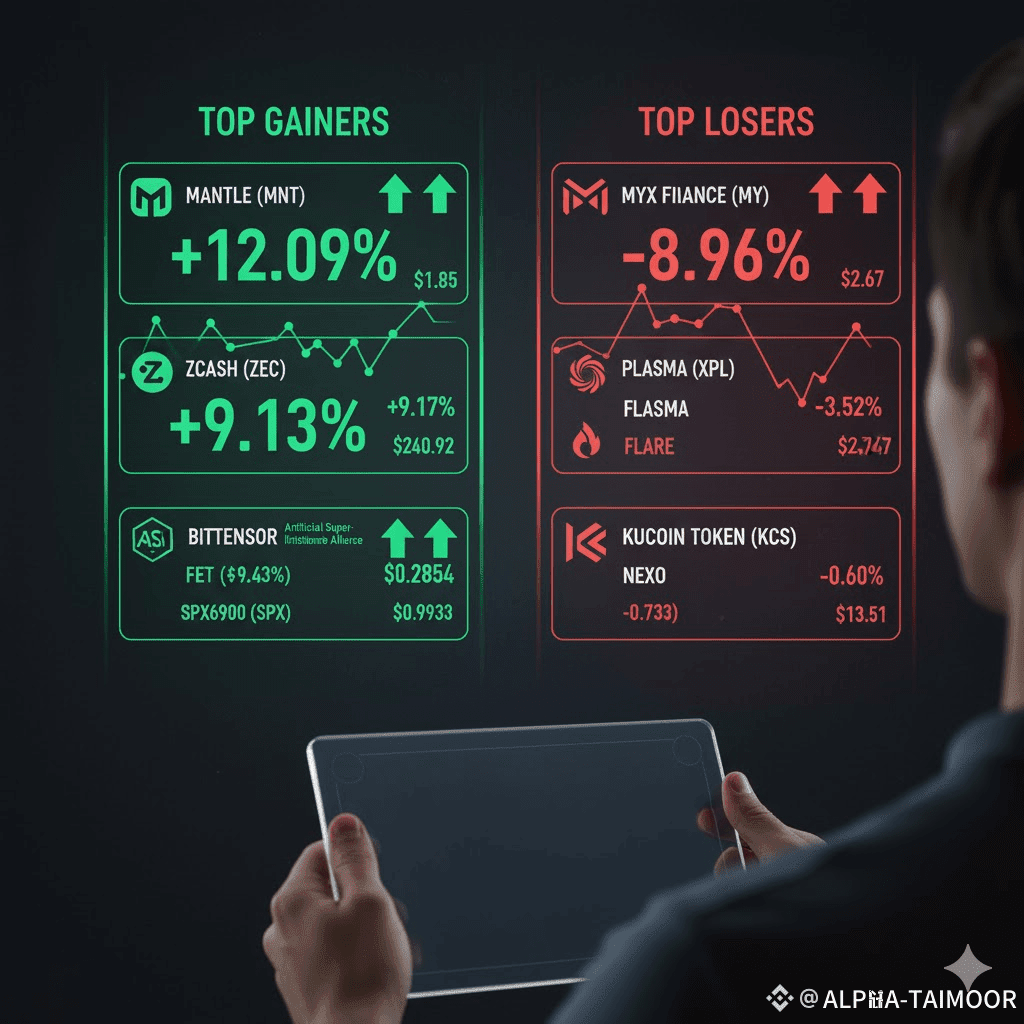 Among top performers, Mantle (MNT) surged 12.09% to $1.85, marking the day’s strongest gain.Zcash (ZEC) followed with a 9.17% rise to $240.92, while Bittensor (TAO) advanced 9.13% to $436.12.