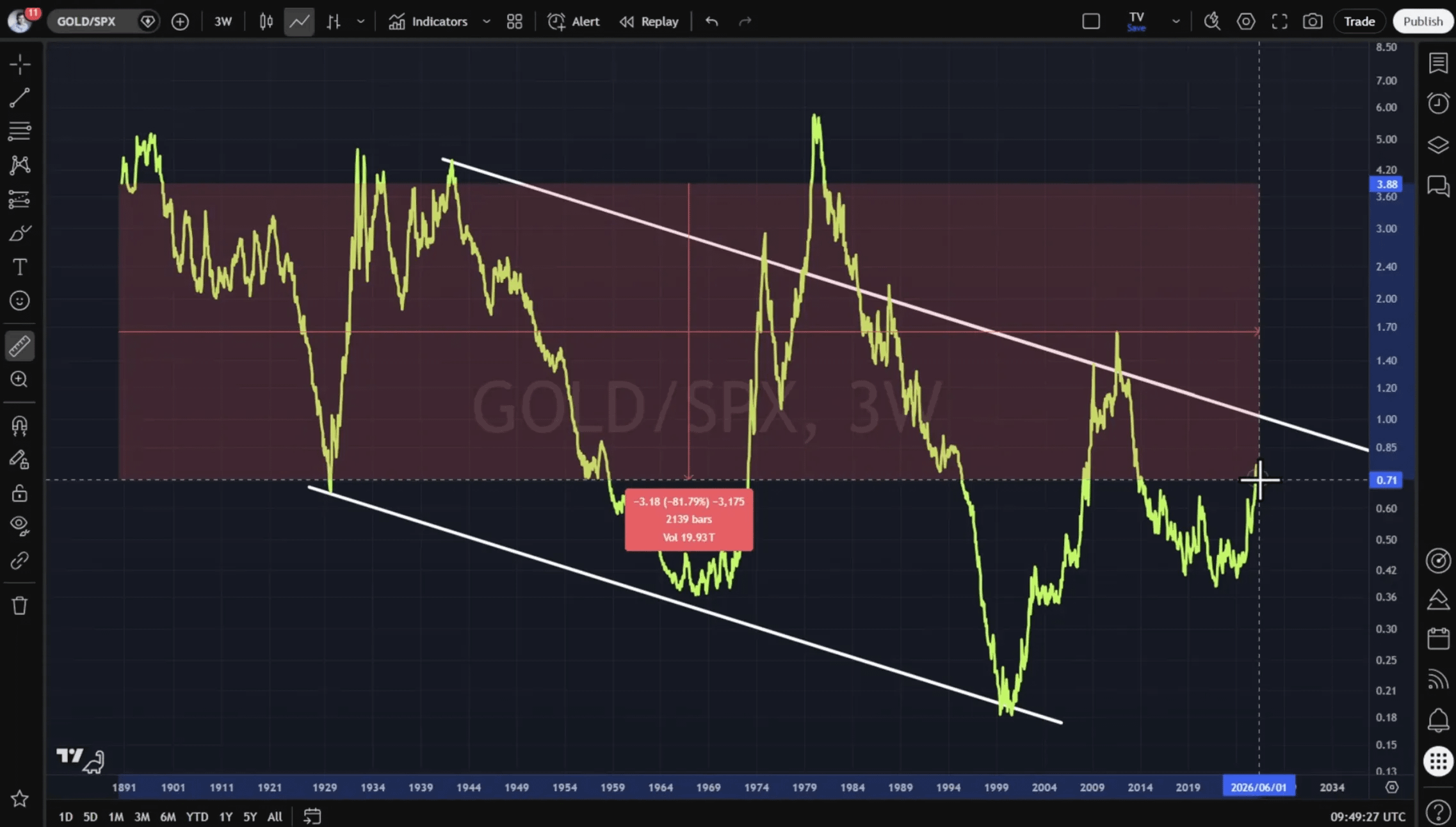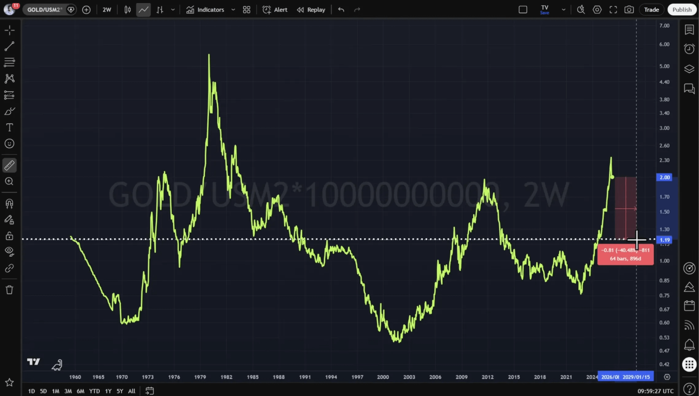 If that plays out, a move of around 40% to the downside would bring gold closer to more balanced levels.