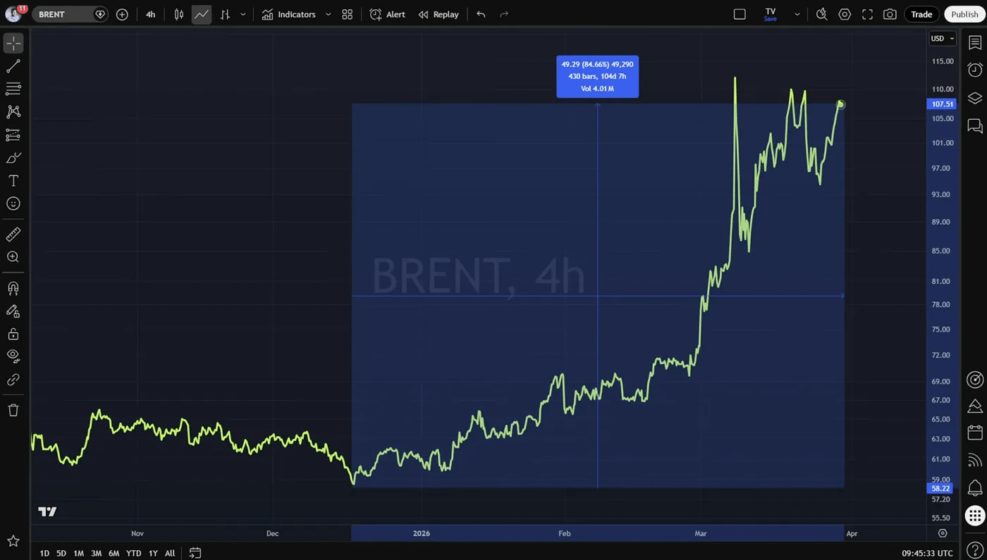 Gold is down roughly 18%, silver has dropped close to 41%, while oil has rallied about 84% in a short span.