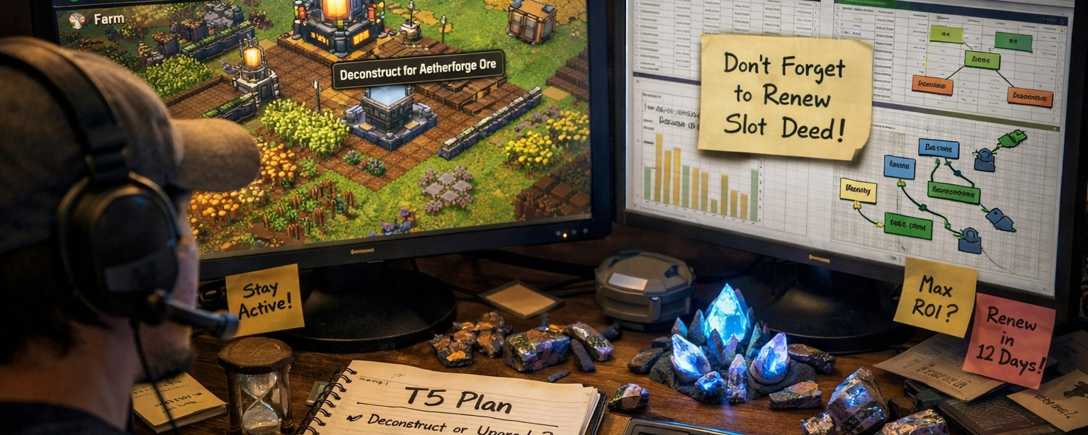 That single decision instantly splits the player base. Not everyone is playing on the same field anymore.Then you add slot deeds on top — not only do you need them, they expire every 30 days.That part hit me differently.It’s not loud pressure. The game isn’t yelling at you.