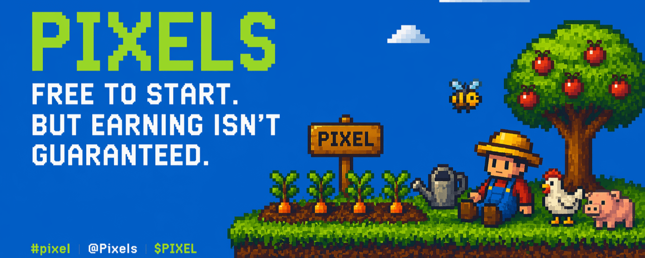 Bạn có thể bắt đầu Pixels hoàn toàn miễn phí. Không cần ví, không cần mua token, chỉ cần vào game và chơi. Phần này là thật và quan trọng hơn nhiều người nghĩ. Vì rất nhiều game Web3 nói là dễ tiếp cận nhưng thực tế lại yêu cầu bạn phải bỏ tiền ngay từ bước đầu tiên. Pixels thì không.