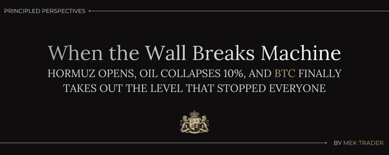 Hormuz Opens, Oil Collapses 10%, and $BTC Finally Takes Out the Level That Stopped Everyone