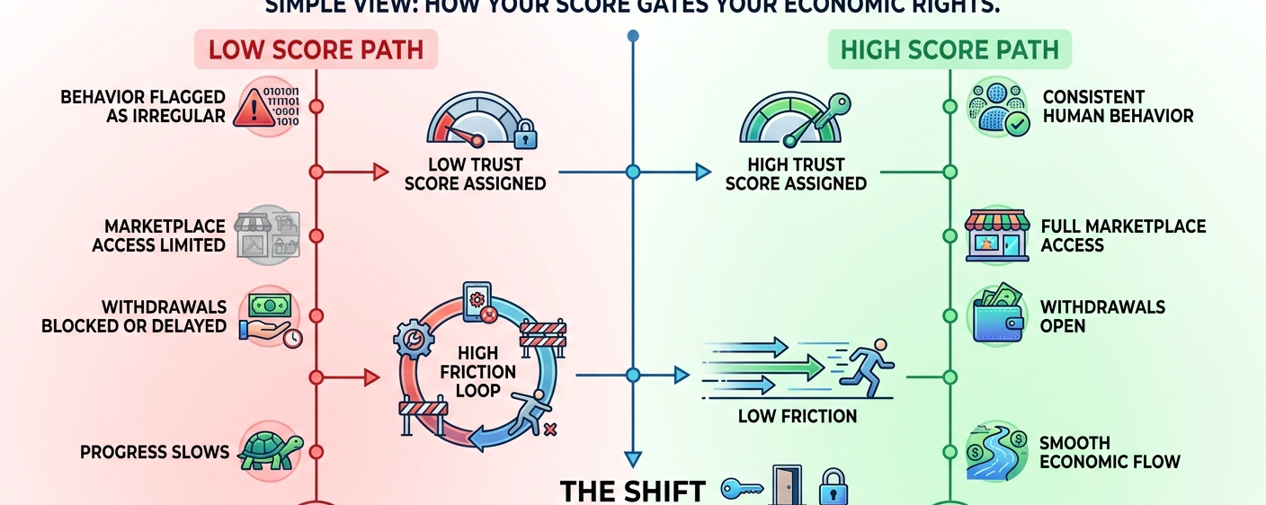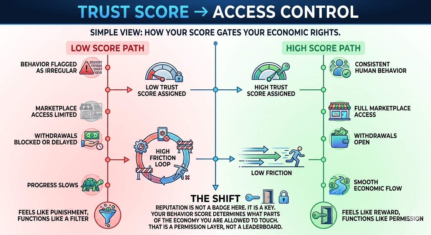 when a score means behavior signal AND anti-bot filter AND economic throttle at the same time, a real player with an unlucky behavioral pattern gets caught in the same friction loop as a bot. the system cannot always tell the difference. and that blurred meaning is something worth watching as the ecosystem scales.