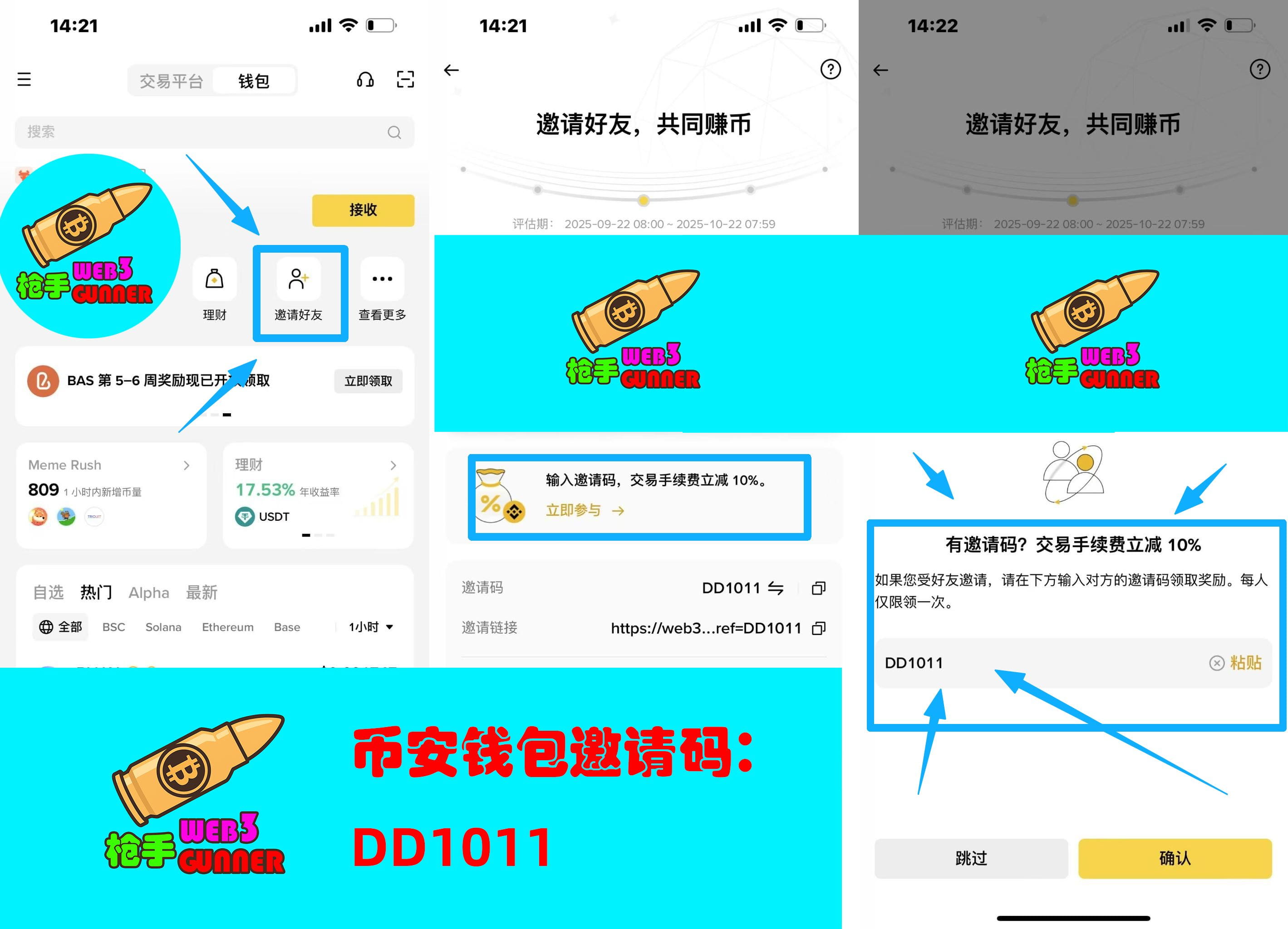 Recently, the meme market has been good. Using Binance wallet to fill in the dog invitation code can help brothers save on transaction fees in the future, instantly providing a 10% rebate. The key point is that later on, brushing Alpha can also provide rebates!