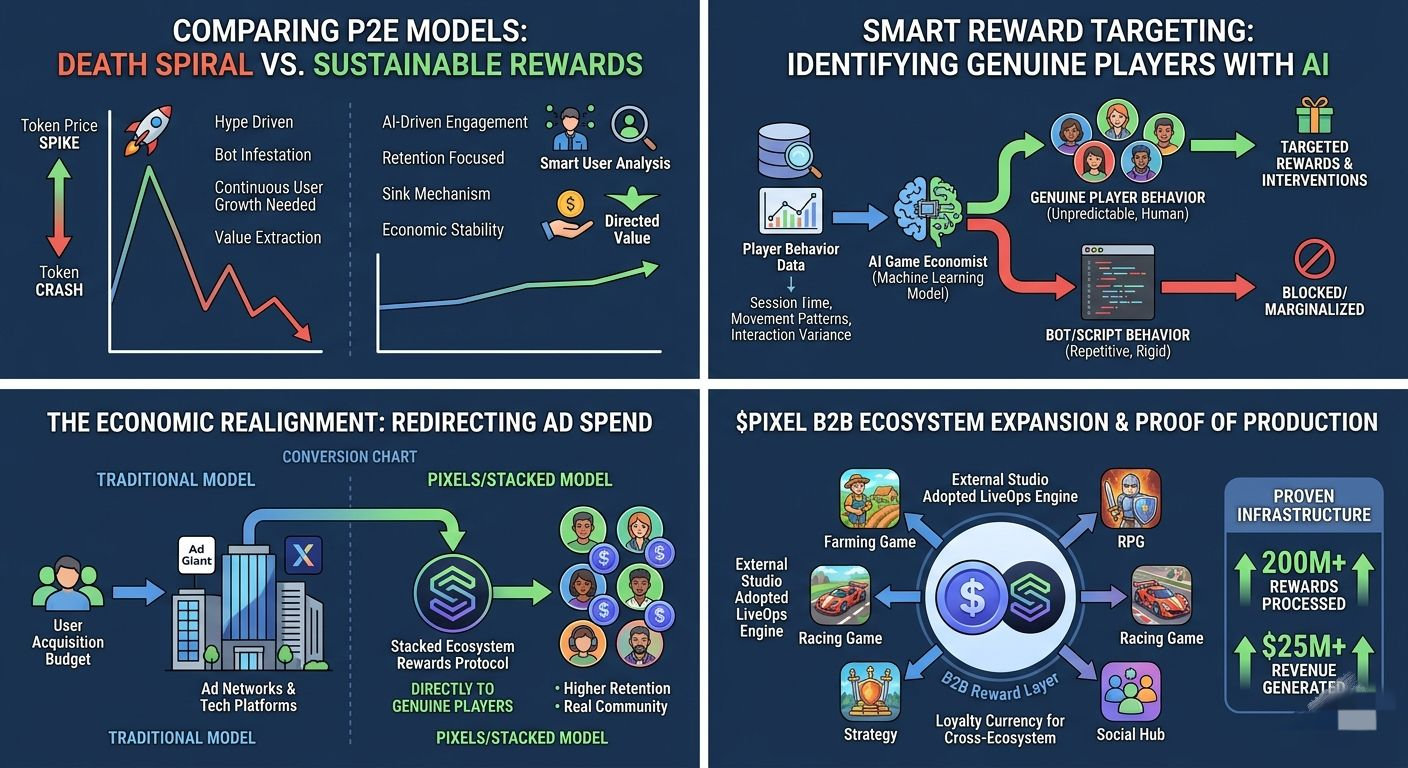 Despite those reservations, the broader implications make this interesting right now. We are watching the asset transition from a single-game currency into a business-to-business cross-ecosystem loyalty layer. If Stacked becomes the go-to infrastructure for other Web3 games to manage their LiveOps, the survival of the currency is no longer tied strictly to the daily active user count of the original game. It becomes a utility token for a broader network of external studios. And unlike projects that sell promises on a whitepaper, this system is actually live. The fact that they have already processed over two hundred million rewards and generated upwards of twenty-five million dollars in revenue proves this is being built in production. That real-world friction provides data you cannot simulate in a lab.