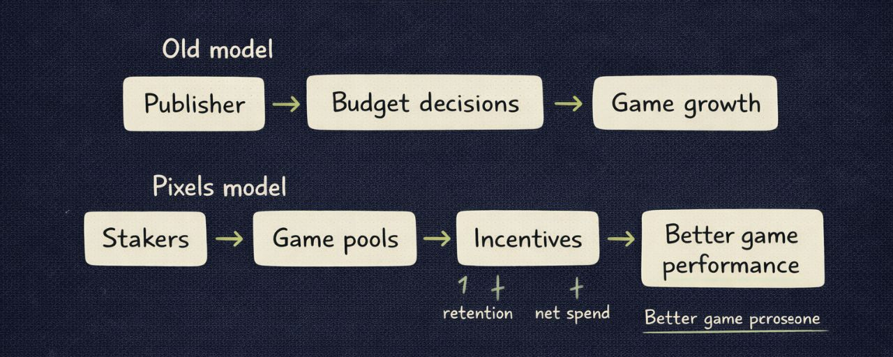 It does not mean games validate blocks in the technical sense. It means games are being evaluated as destinations for capital, incentives, and future support. That starts to look a lot like publishing, except with a different decision-maker. Instead of a publisher allocating budget entirely from the top down, Pixels is building a model where community stake becomes part of the allocation logic. That is my inference from the way the whitepaper links game pools, future incentives, and community signals on game quality.