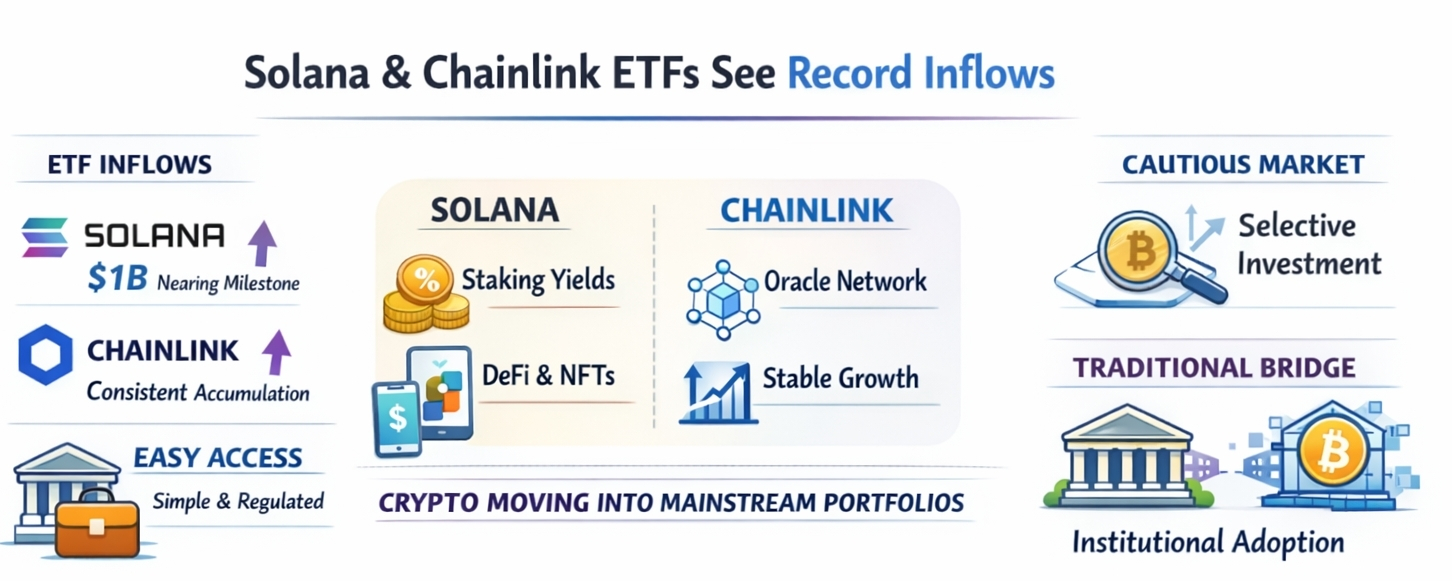 Over the past few sessions, ETFs tied to Solana and Chainlink have recorded their strongest inflows in weeks.