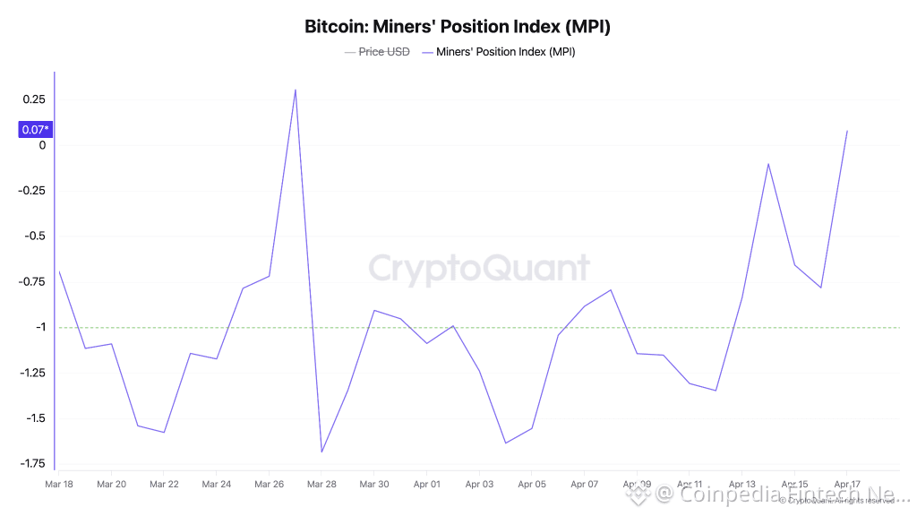 The Miners’ Position Index (MPI) has recently turned positive after an extended period in negative territory, signaling that miners are beginning to sell again. While the current levels do not indicate aggressive distribution, the shift itself is important.