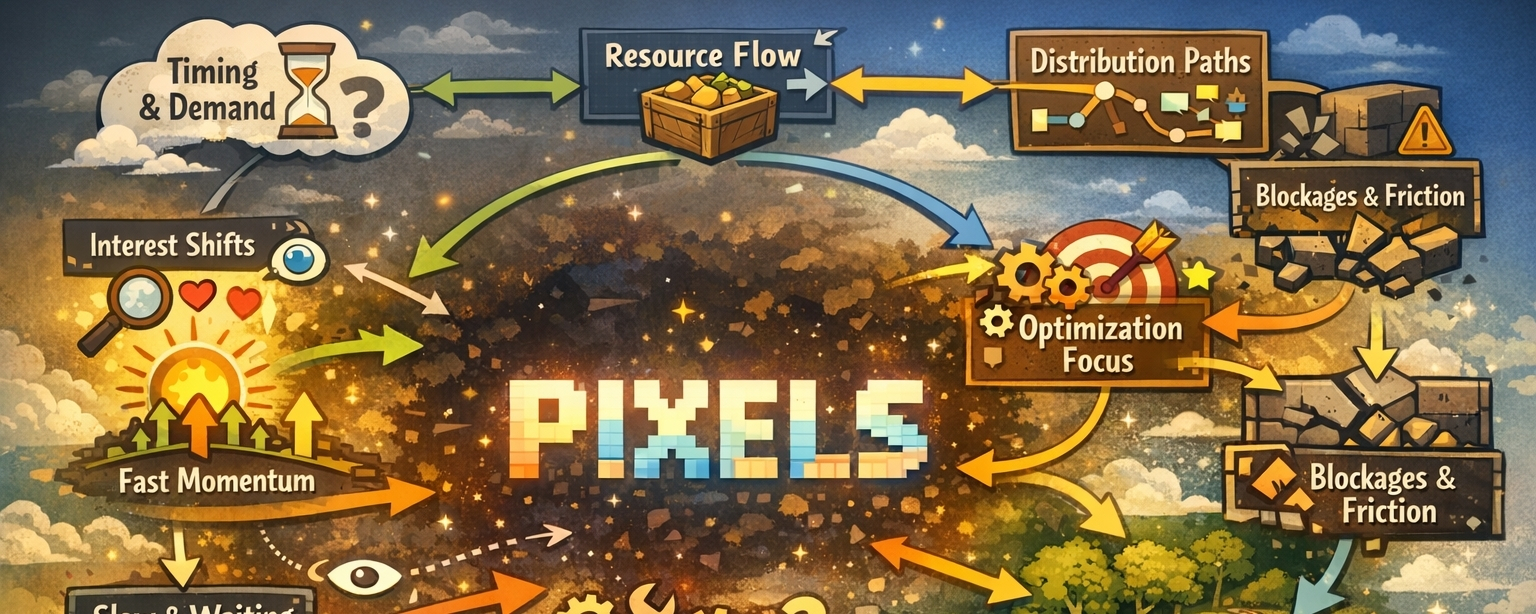 I’ve been thinking about PIXELS this closely lately, and it doesn’t really feel like I’m looking at a single game anymore. It feels more like watching something in motion—quietly adjusting itself depending on how people move through it. Pixels isn’t just sitting there waiting to be used. It’s reacting, shifting, almost like it’s aware of the rhythm around it.