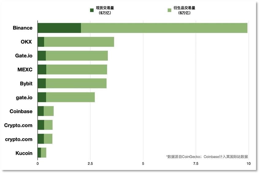 Looking at the performance of the top 10 exchanges, Binance occupies 34.59% market share with a total trading volume of over $9.93 trillion (spot + derivatives), being the only crypto asset trading platform that has consistently occupied 1/3 of the market share.