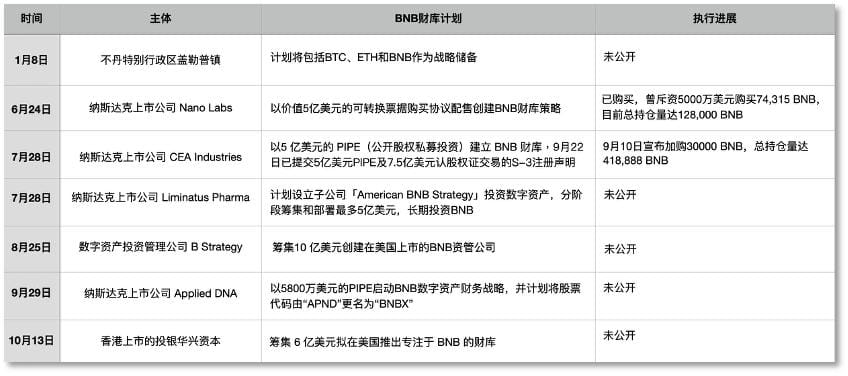 In June and July of this year, several publicly listed companies in traditional industries announced plans to include BNB in their balance sheets. When CZ revealed that over 30 teams are preparing projects involving BNB reserves, this momentum further grew in Q3.