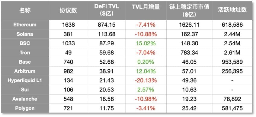 Among the key indicators of various chains, BSC's TVL monthly growth rate is significant.
