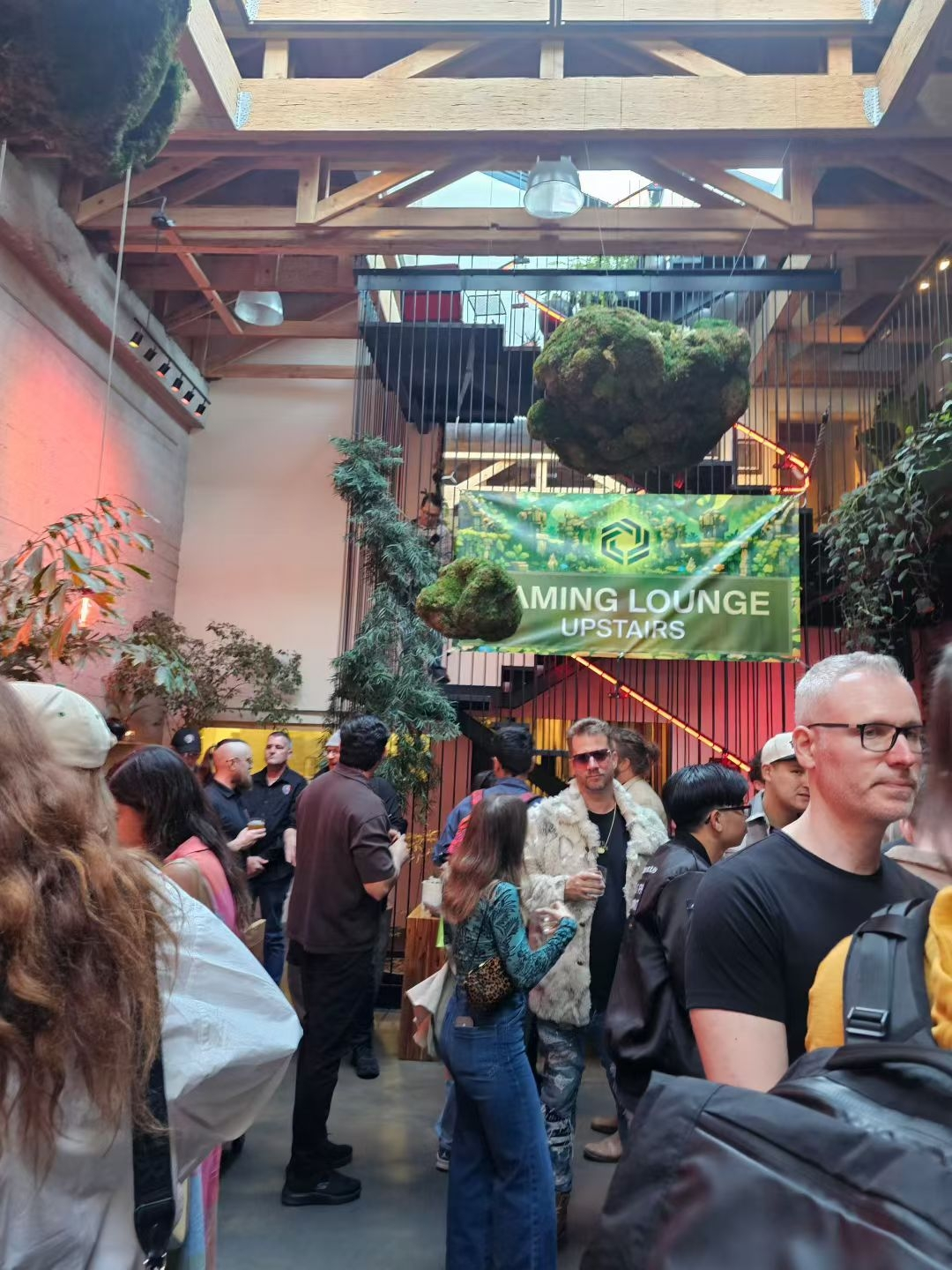 2. Immutable, holding a side event party during GDC. Sister Cathy went to the scene to try out their two showcased chain games, one is Ubisoft's Might & Magic Fates card game, and the other is called Goblins of Elderstone, a city-building and nurturing game. A streamer was live-streaming gameplay at the party.