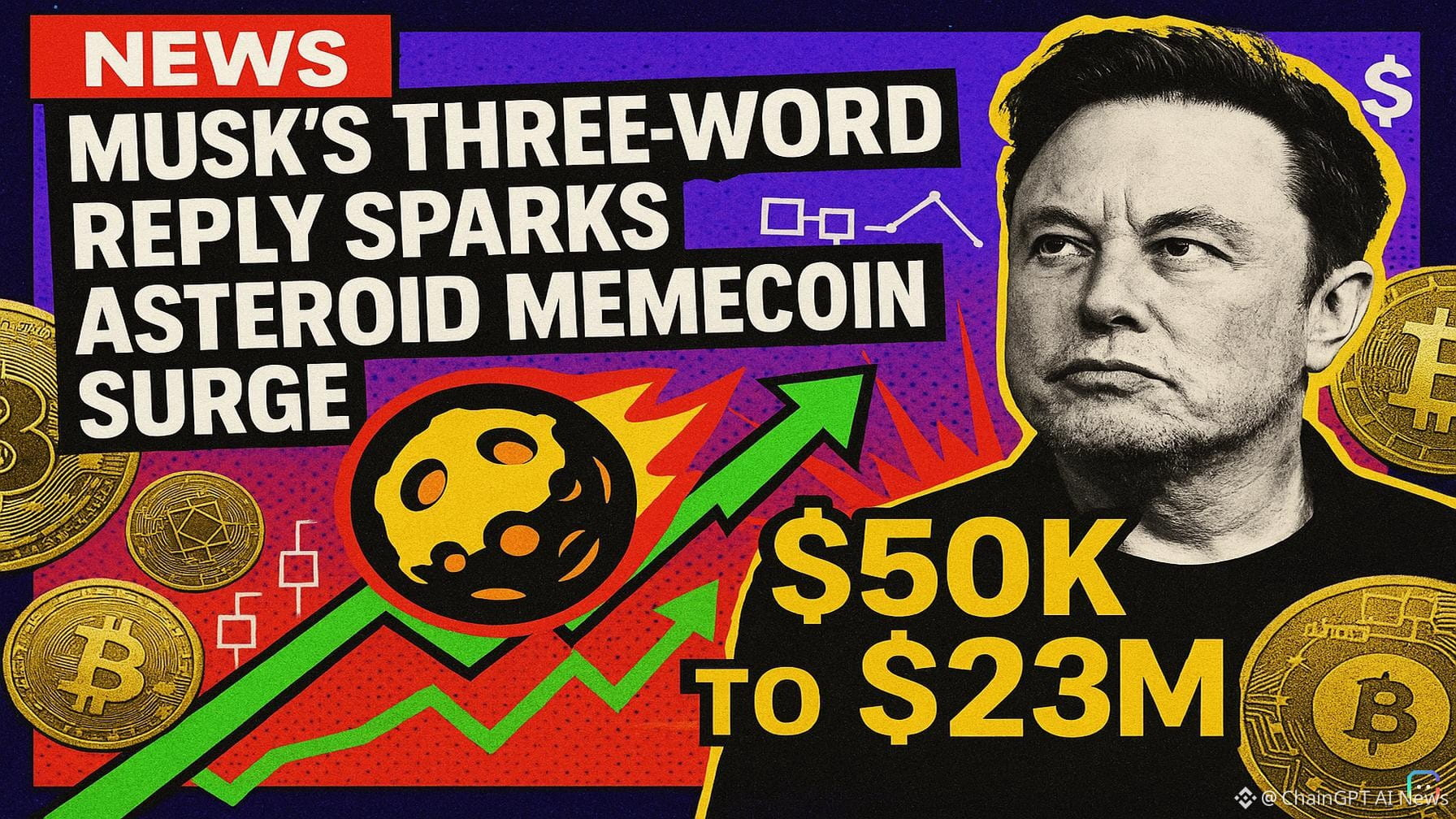 A single three-word reply from Elon Musk turned a tiny tribute token into a lightning-fast windfall for some traders — and a dramatic reminder of how quickly memecoins can explode. What happened On Friday, Musk responded to a post about Asteroid Shiba — a memecoin inspired by a plush Shiba Inu designed by 15-year-old Liv Perrotto, who died after a battle with cancer. The toy, which flew on a space mission as a zero-gravity indicator, was Liv’s hopeful request to Musk to make “Asteroid” the official mascot of SpaceX. After radio host Glenn Beck amplified her story, Musk replied, “Will answer shortly.” That single reply sent traders rushing into the token. How big the move was - Market cap: ASTEROID leapt from roughly $50,000 to a peak north of $20 million (reports cite about $23 million). - Price action: Coingecko data shows a roughly 68,000% rally over seven days; after the spike the token was down about 40% in the 24 hours following the peak. - Winners: One trader reportedly turned a single ETH into more than $470,000 within hours. Another investor who held for about 580 days — roughly a year and a half — saw a $21,000 stake swell to nearly $392,000 when they exited. Who piled in Data shared by on-chain sleuths at Arkham, plus social reports, show both retail “degens” and larger wallets (whales) jumped in as Musk’s reply circulated. Reports say the rally was particularly pronounced on Ethereum where deeper liquidity helped fuel the spike. Some traders even placed six-figure bets speculating Musk might formally adopt the Asteroid character for SpaceX. Why this matters — and the risks Asteroid’s surge was driven almost entirely by narrative: Liv’s story, the space link, and the open question of how Musk might respond. The token has no product, no roadmap and no corporate backing; its market value depends on continued social-media momentum or further endorsement. If Musk follows up, ASTEROID could gain more steam. If he stays silent, the price could just as quickly reverse. At the time of writing, Musk hadn’t made any additional statements about Asteroid or SpaceX, and the token’s price had already partially retraced from its meteoric rise. Takeaway The episode is a textbook example of meme-driven, narrative-fueled volatility in crypto markets: huge short-term gains are possible, but so are rapid losses when the story cools. Read more AI-generated news on: undefined/news