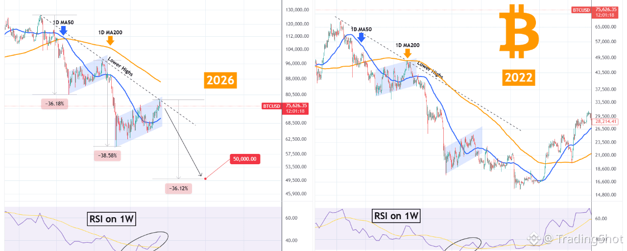 Bitcoin (BTCUSD) hit on Friday the Lower Highs trend-line that started on its October 06 2025 All Time High (ATH) and so far it has been rejected. As long as it stays below its 1D MA200 (orange trend-line), the Bear Cycle remains valid and in fact amasses more and more similarities with the 2022 one.