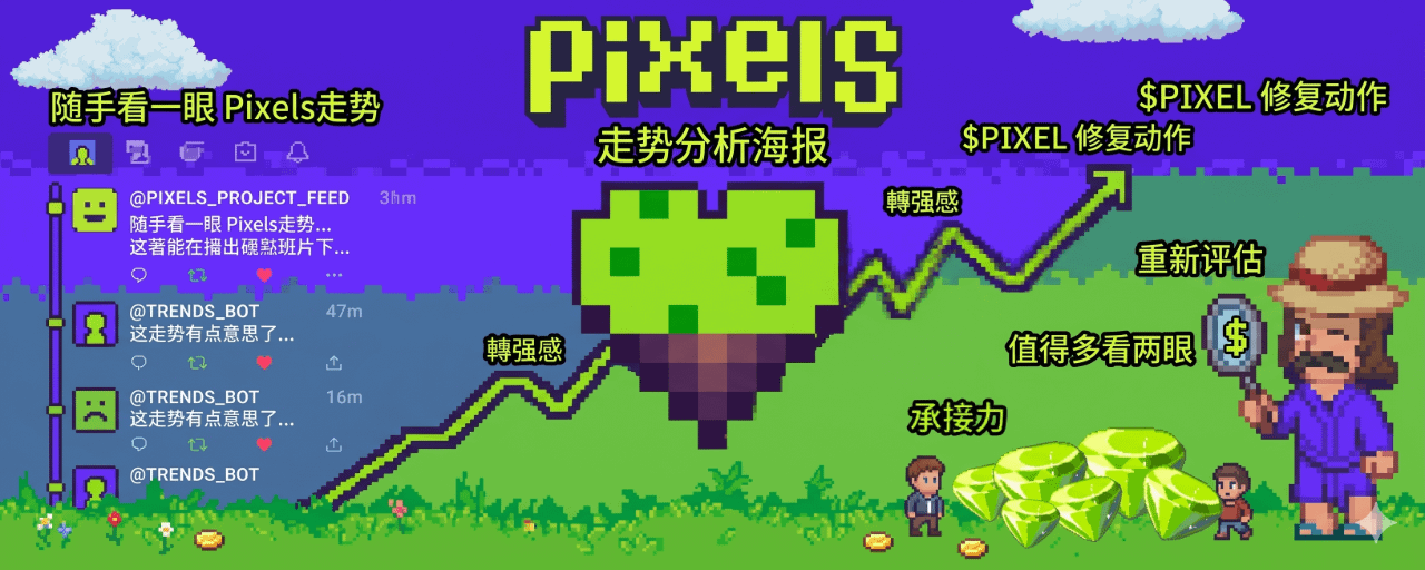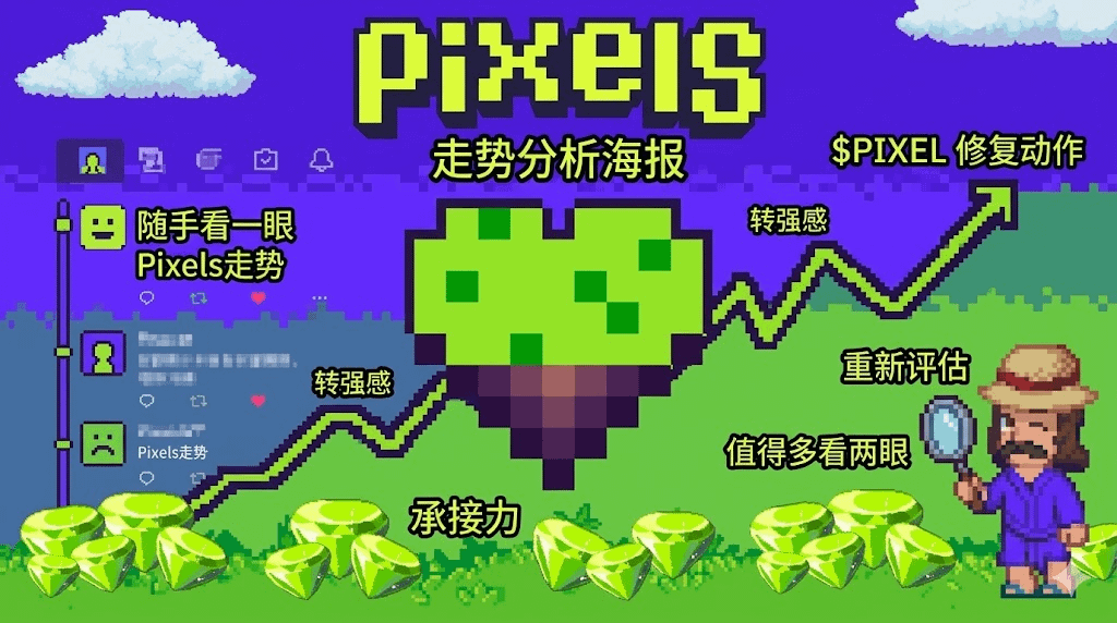 I think the most interesting thing about this trend is not how much it has risen, but that it has started to make people reconsider whether there is still room to grow. Because many coins look lively on the surface when they rebound, but once you break it down, you'll find it's just a quick emotional pulse, and once it's done, it dissipates without any follow-up. However, $PIXEL has been a bit different recently; it seems to have finally started to show some decent recovery actions after experiencing previous suppression and fluctuations. Especially when the price returns to a more recognizable position, the market's attitude towards it will also change—originally it was wait-and-see, now it is starting to reassess.