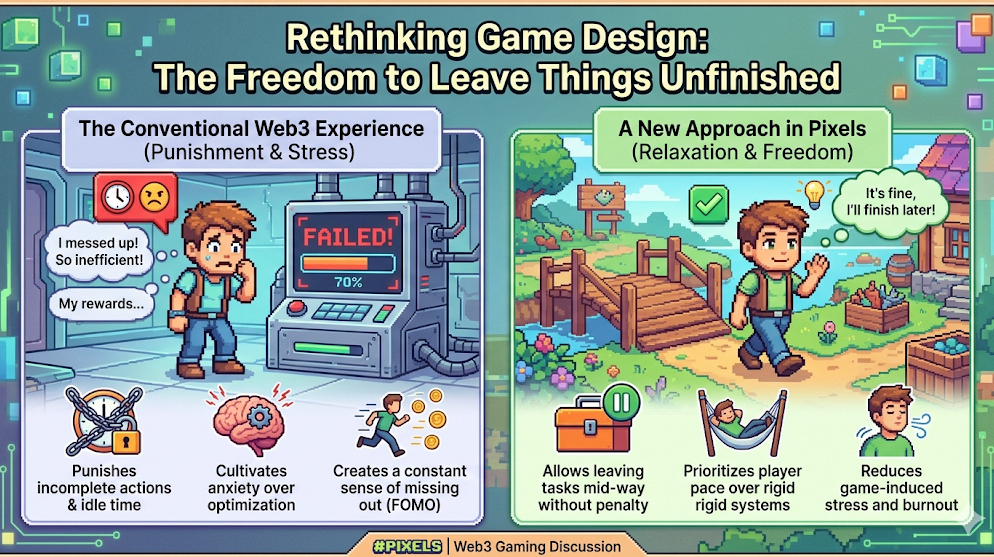 In most Web3 games, that kind of playstyle feels messy. You lose track, miss something important, and it becomes annoying.