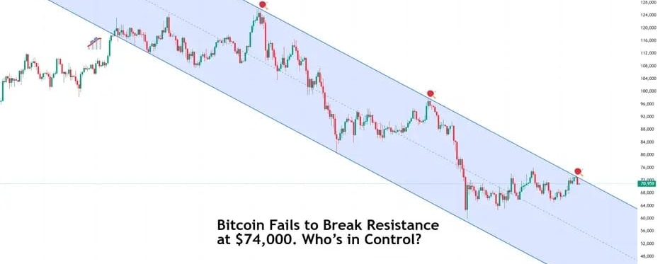 Technical analysts note BTC testing overhead resistance near $76,000 while holding above key moving averages like the 50-day EMA. A clean breakout above $76K–$78K could open the door to $80,000–$85,000 quickly, while failure to hold $72,000–$73,000 might invite a retest of lower supports.