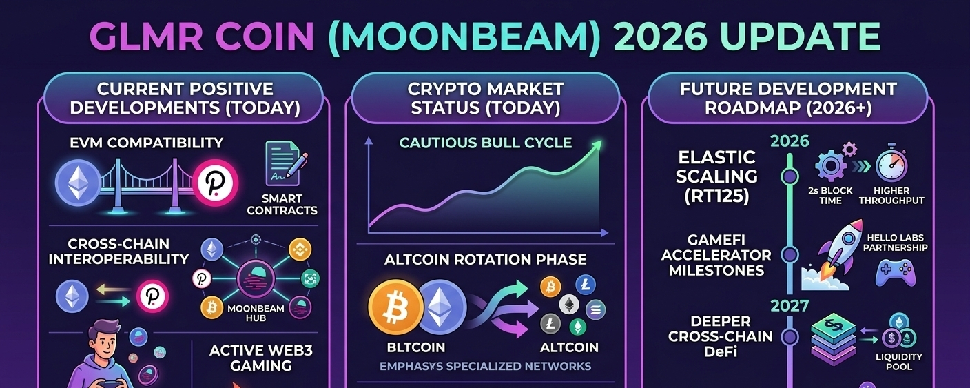 GameFi Recovery: The Web3 gaming industry is showing real product releases with viable token models after a period of development, driving transaction volume on high-performance networks. ​Infographic Description: Moonbeam (GLMR) 2026 Update