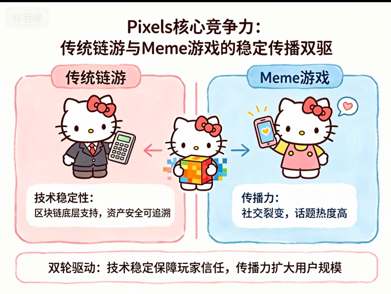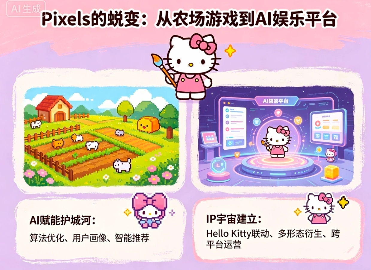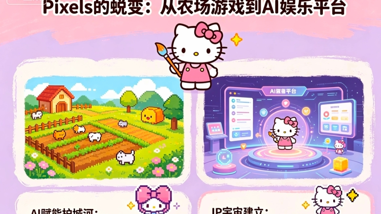 很多用户对Pixels的印象还停留在“种菜挖矿”。但根据最新的产品路线图,Pixels正在经历一次深刻的物种进化。首先是AI赋能的护城河,引入AI驱动的奖励引擎,解决了传统链游“脚本泛滥”的死穴。这不仅提升了留存率,更重要的是保证了经济模型的抗通胀能力。其次是IP宇宙的建立,它不再是一款单一的游戏,而是一个整合了迷你游戏与合作项目的发行平台。这种转变类似于从“开发一款App”变成了“建立App Store”,想象空间被彻底打开。
