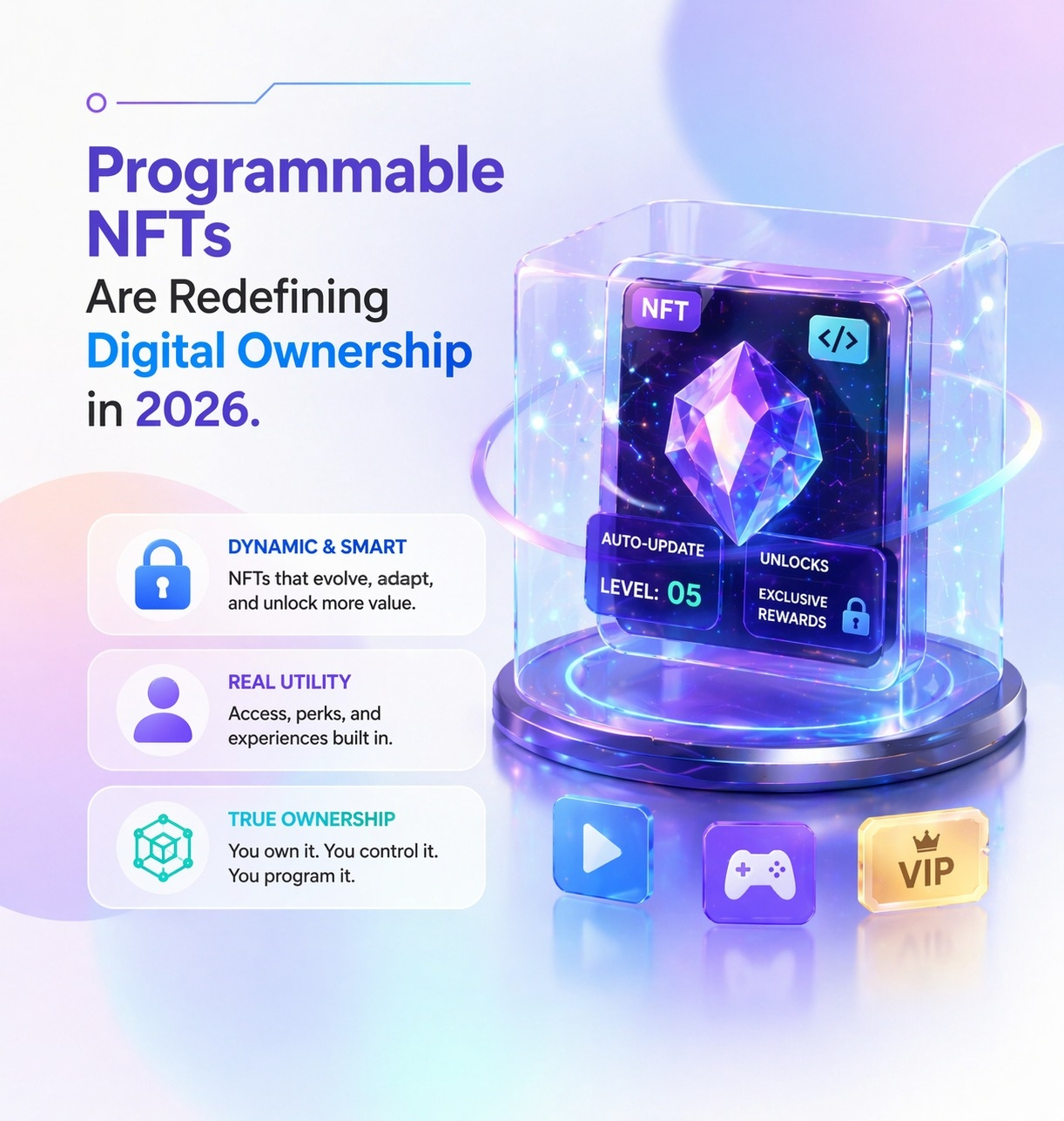 NFTs were once mainly associated with digital art and collectibles, but in 2026, they are evolving into programmable assets with real functionality. These next-generation NFTs can change, interact, and adapt based on conditions, making them far more than static tokens.