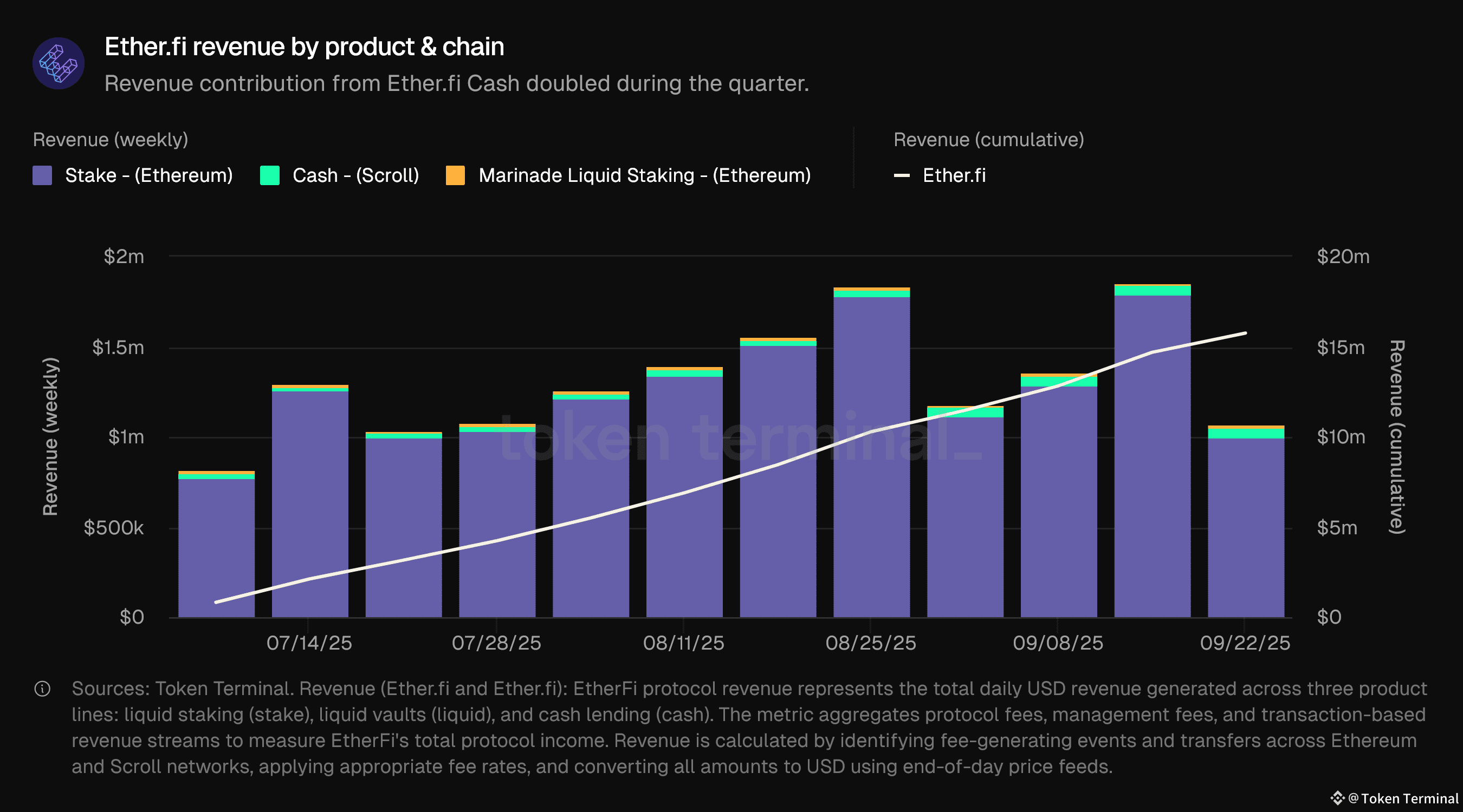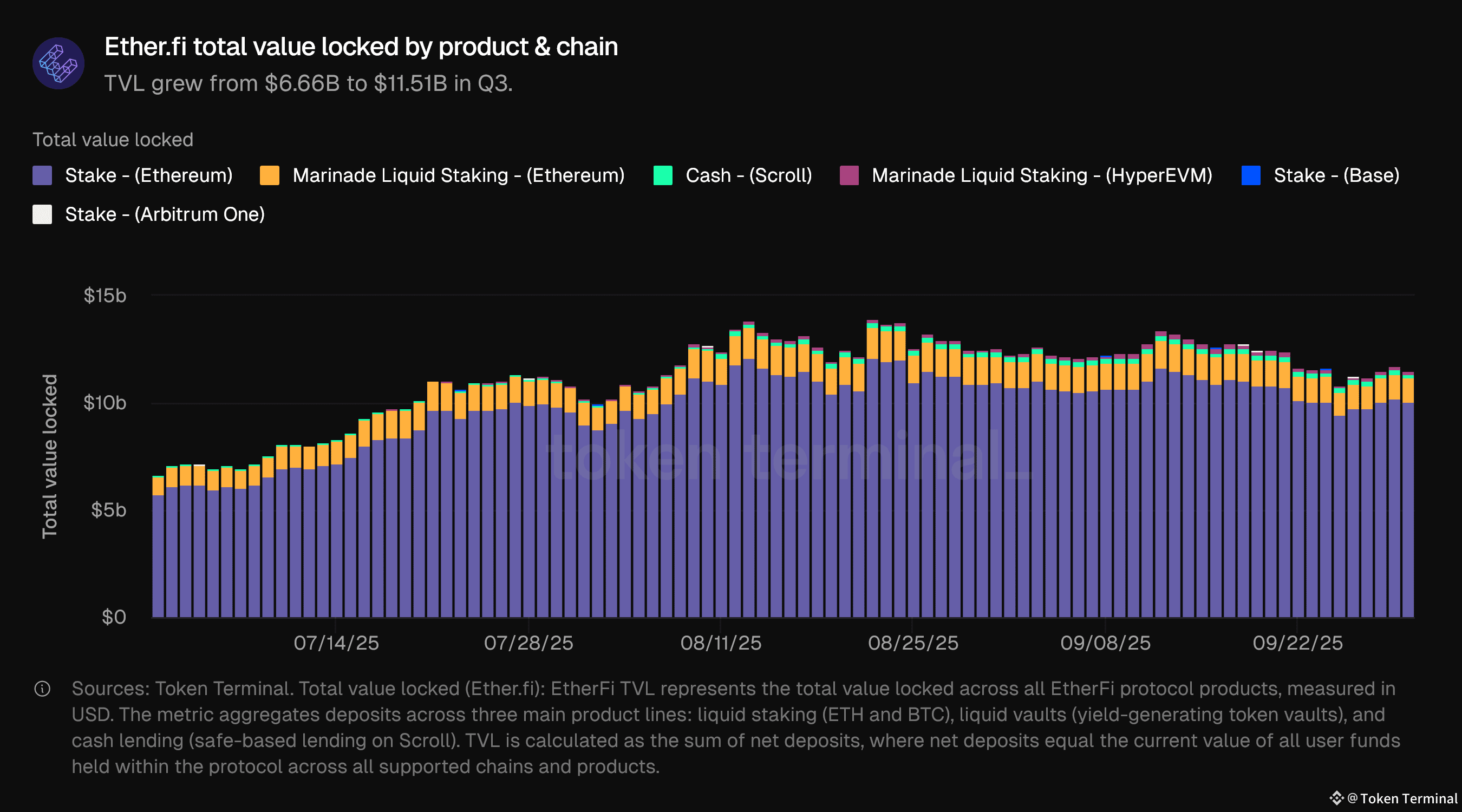 TVL: Total TVL trends upward with consistent inflows across Stake and Liquid products, stabilizing after strong early-year expansion. Organic user growth, partner integrations, institutional participation, weETH adoption, and cross-chain deployments are driving growth. Q4 will focus on new cross-chain deployments, improved Liquid Vault rewards, and additional growth through Ether.fi Cash adoption.