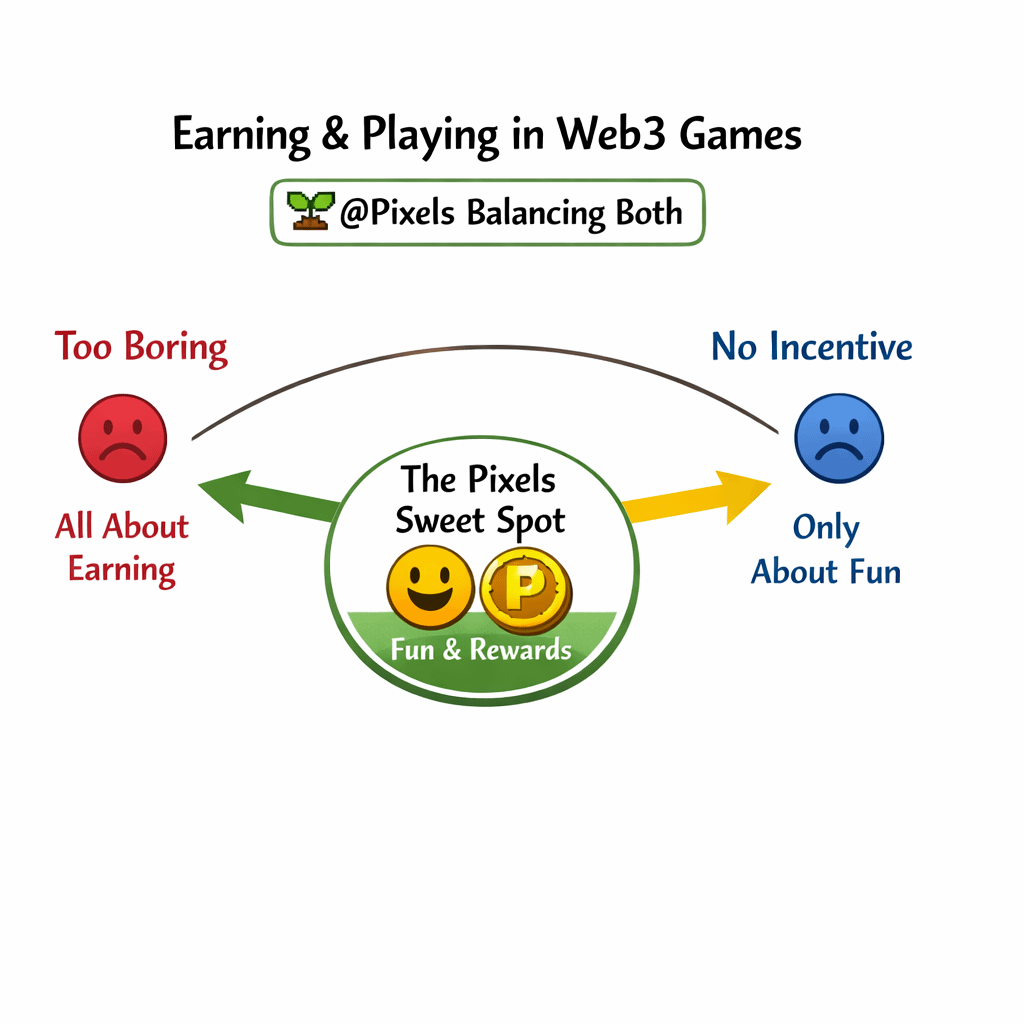 This balance is very important. If game only gives money feeling, it becomes boring fast. But if game only fun no reward, players also leave. @Pixels try to balance both.