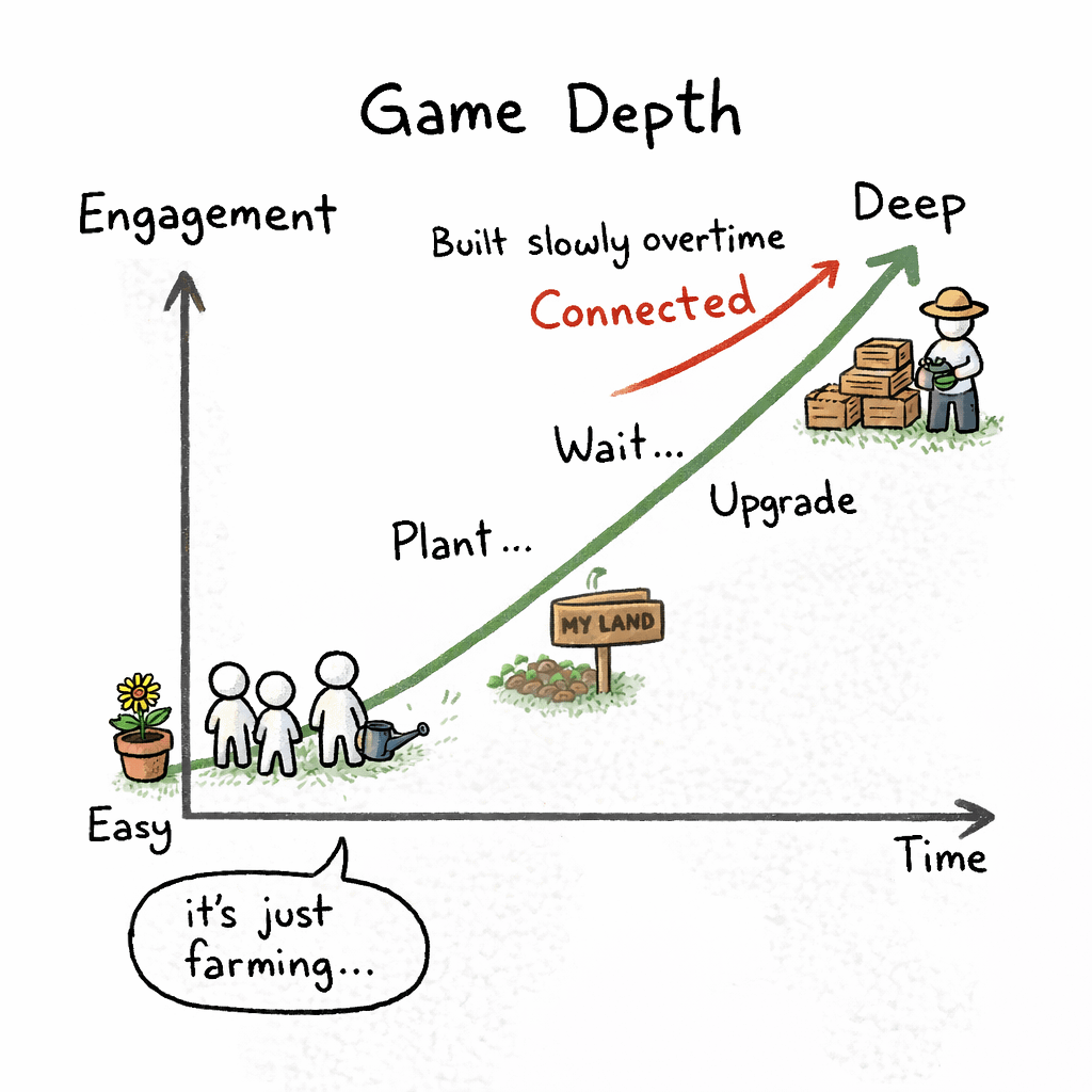 Many new players think it is easy game. But after some days they feel like they are part of something bigger. You plant, you wait, you collect, you upgrade. Slowly you feel attached to your land.