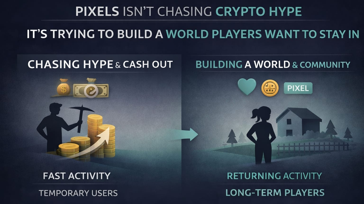 If most of that crowd is there for short-term rewards, then growth can be misleading. I’d take a smaller group of people who actually care about the game over a huge wave of temporary users any day. And from the outside, Pixels seems more aware of that trade-off than a lot of similar projects. It feels like the team understands that real strength comes from people who participate, spend time, and keep coming back — not just people who arrive when the incentives are high and disappear when they’re not.