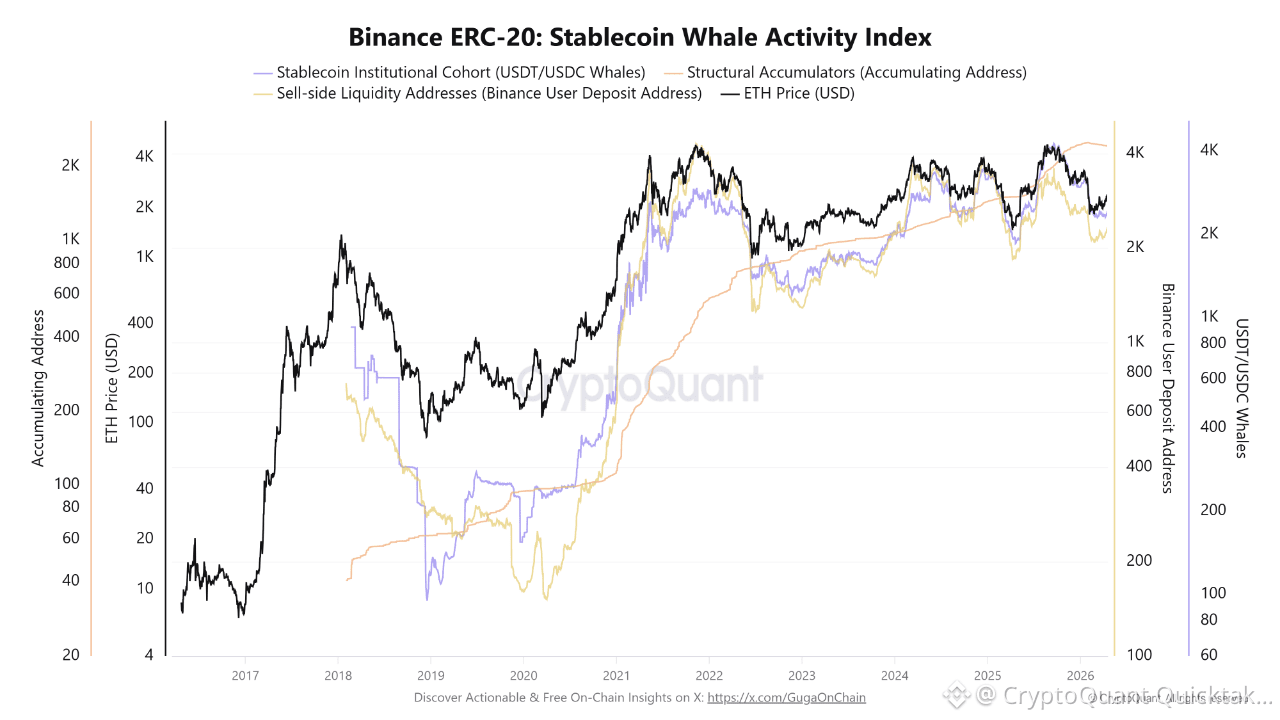 The Binance ERC-20: Stablecoin Whale Activity Index indicator reveals a structural supply exhaustion. For each address depositing ETH on the exchange, there are two institutional addresses that are either accumulating the asset or positioned with dollar ammunition to defend the price. The supply shock is fully underway.