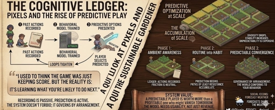 The uncomfortable question is what happens to the version of you that might have done something else. The player who would have explored a different corner of the map. Who would have tried an inefficient crop rotation just to see what happened. Who would have wandered. That player still exists, technically. Nothing stops them. But the friction of deviating from the predicted path increases silently. The smooth road is right there. The rough one takes effort. Most people take the smooth road. Most people don't even notice they're choosing.