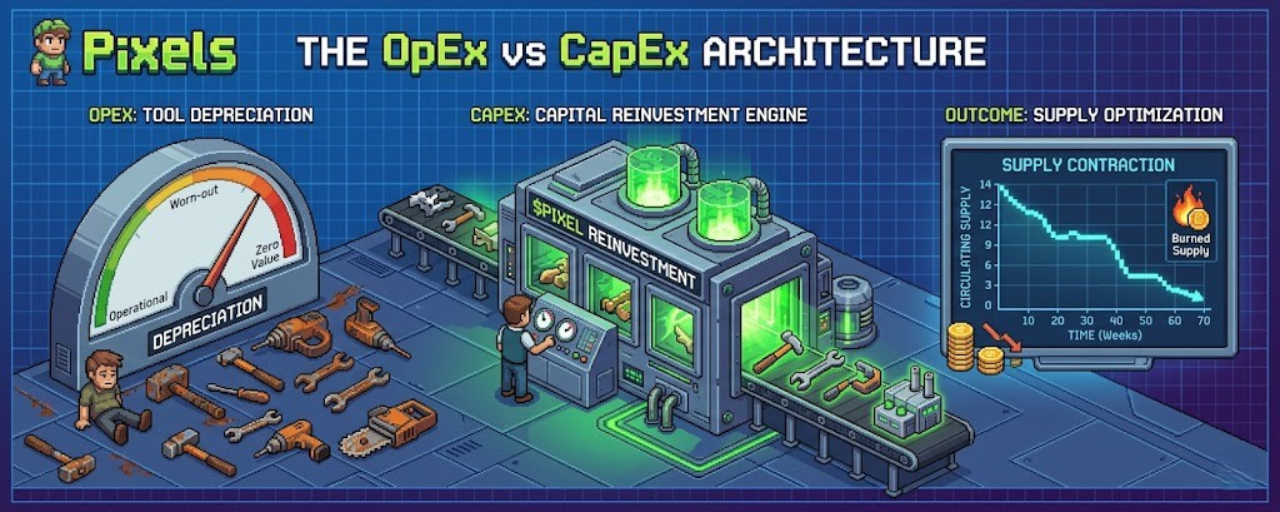 Most Web3 gaming projects failed because they were built on a fundamental economic flaw: infinite supply with static infrastructure. After a technical audit of the Chapter 3 mechanics and the updated Pixels ($PIXEL) Litepaper, it is evident that the development team is implementing an Operating Expenses (OpEx) model - a standard in traditional IT business that has been historically absent from GameFi.