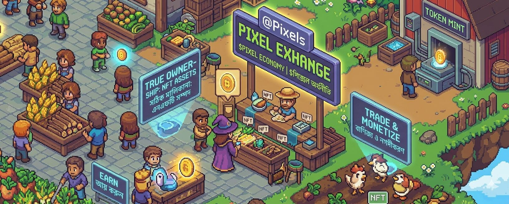 Pixels takes digital ownership to the next level. Each asset — from land plots to rare items — is tokenized as an NFT. This means players can freely trade or sell their assets outside the game, giving them real-world value.